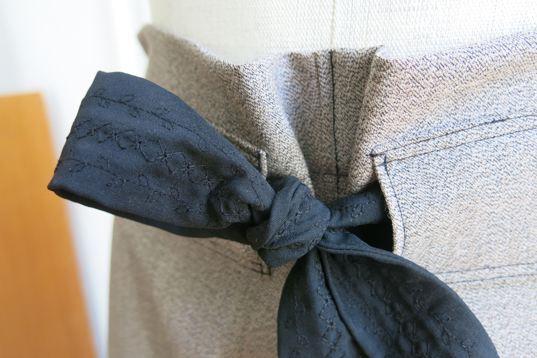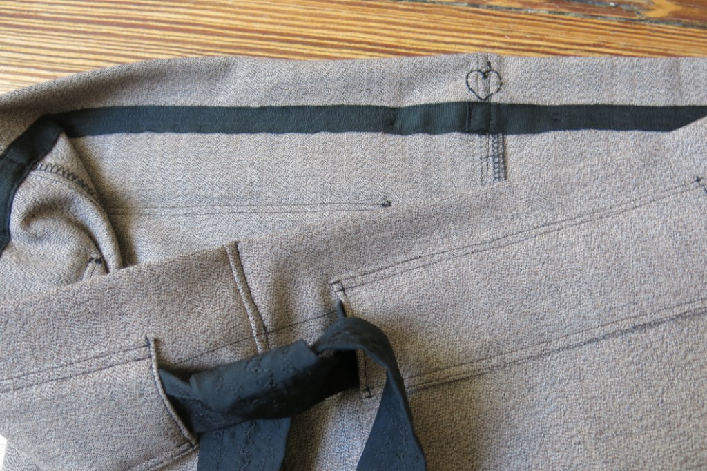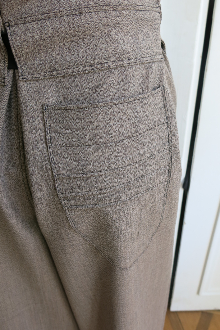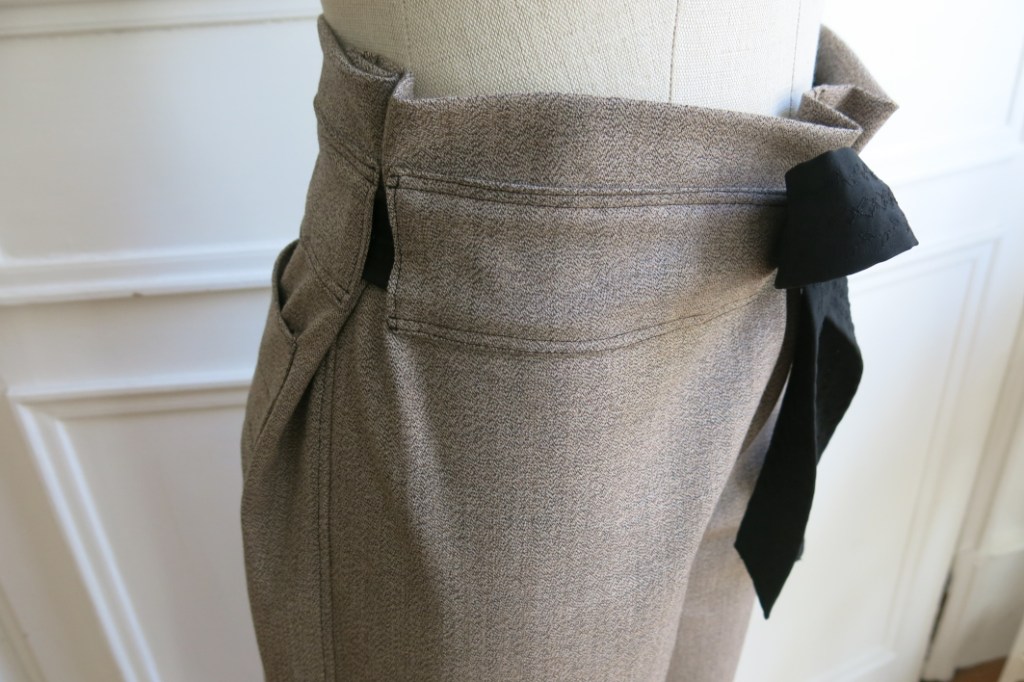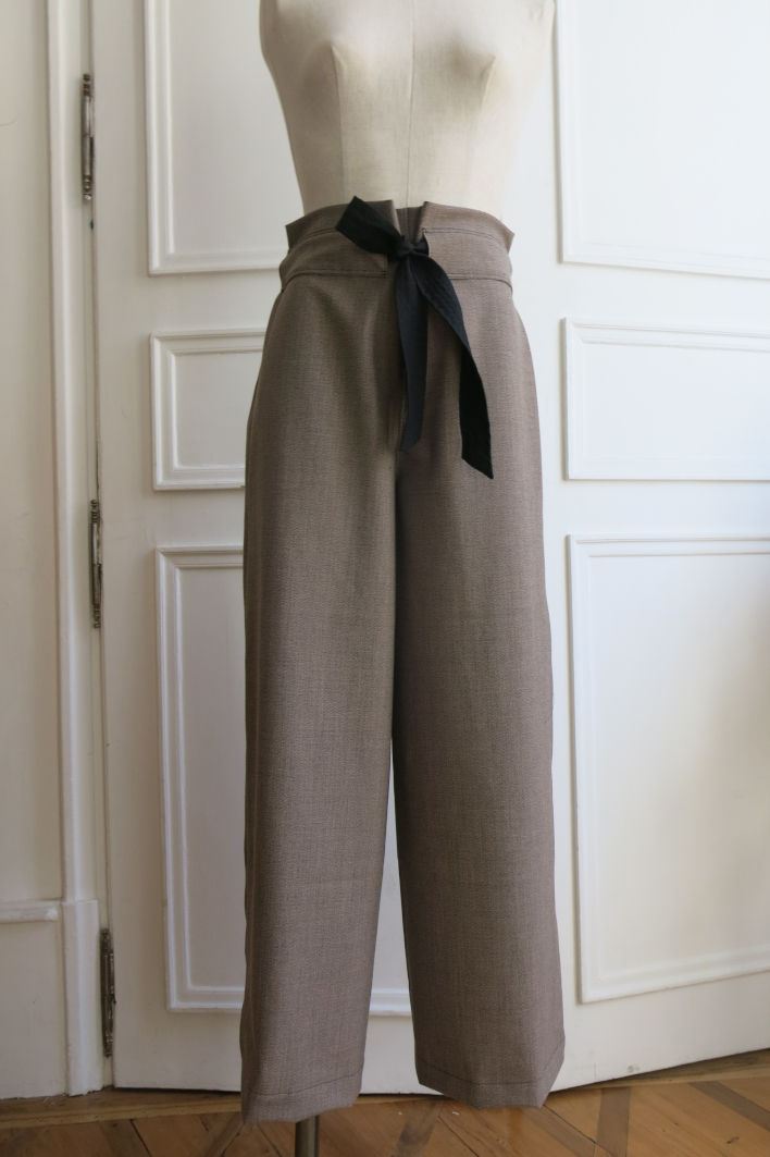 Ce pantalon taille-haute est un travail de Mylène L’Orguilloux, disponible avec d’autres patrons sur le site reformonsnous.org