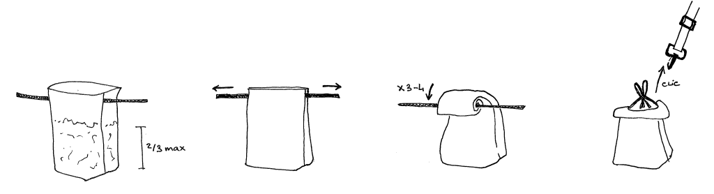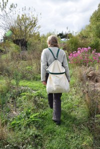 → Produire du tissu de qualité est long et coûteux, alors même que les draps anciens en lin sont jetés ou au mieux, donnés en ressourcerie… Les sacs de récolte sont fabriqués en partie dans ces textiles de réemploi. Un examen minutieux permet de détecter les parties abîmées qui porteraient préjudice à l’usage. Des petites tâches, irrégularités de couleurs ou de textures peuvent subsister. Elles sont sans conséquences : il s’agit simplement de la marque du temps qui passe et des objets à vies multiples.