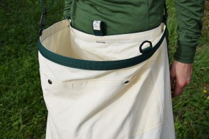 → 3 poches devant (2 petites et 1 grande) fermées par pressions, pour emporter des gants, un petit bouquin de reconnaissance et/ou un sécateur…